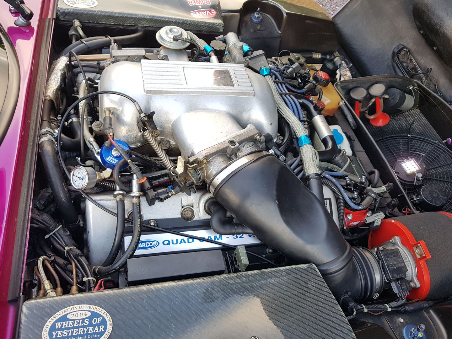 2023 the fuel system was modified to provide a new high pressure fuel pump and the fuel filter inside the boot (below the fuel tank) - a BBK fuel pressure gauge system was added to the fuel rail in the engine compartment which allows for a far more accurate set up - a manual cut off valve was fitted with an 'inertia fuel cut off ' fitted in the cabin (a crash sensor as fitted to most modern cars).