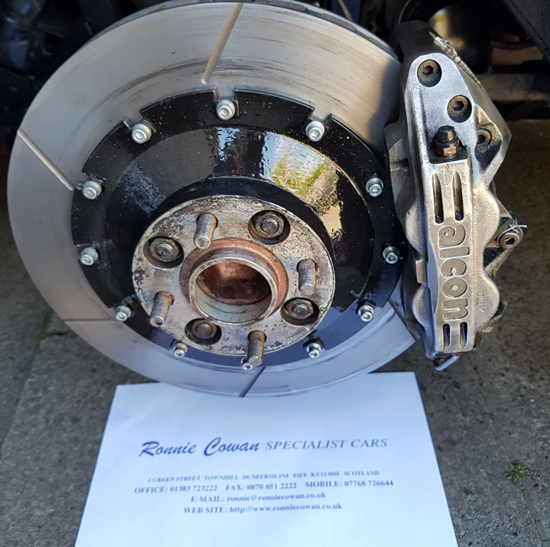 dia floating Alcon race brake discs and alloy calipers on the